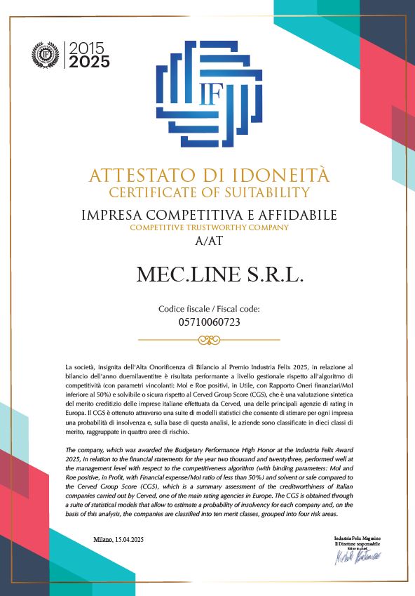 Mec.line srl ha sido galardonada entre las mejores empresas del sector de los metales.